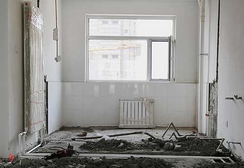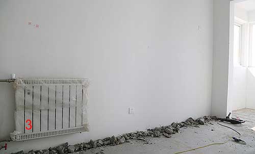 接下來裝修流程開始,首先要改造水暖,開發(fā)商標配的暖氣片先不說質量怎樣,我們來看看暖氣片歸置的位置吧。