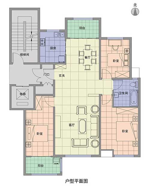 先來一張王先生家的戶型圖,三室兩廳一廚一衛(wèi),雙臥室、客廳向陽,南北通透,可算是一個很好的戶型。