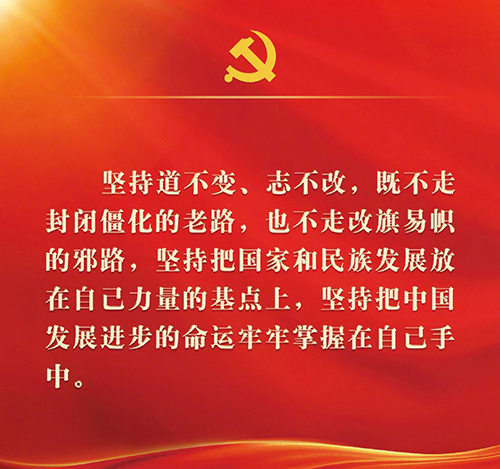 七、堅持道不變、志不改,既不走封閉僵化的老路,也不走改旗易幟的邪路,堅持把國家和民族發(fā)展放在自己力量的基點上,堅持把中國發(fā)展進步的命運牢牢掌握在自己手中。