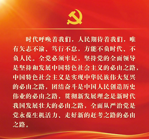 十一、時代呼喚著我們,人民期待著我們,唯有矢志不渝、篤行不怠,方能不負(fù)時代、不負(fù)人民。全黨必須牢記,堅持黨的全面領(lǐng)導(dǎo)是堅持和發(fā)展中國特色社會主義的必由之路,中國特色社會主義是實現(xiàn)中華民族偉大復(fù)興的必由之路,團結(jié)奮斗是中國人民創(chuàng)造歷史偉業(yè)的必由之路,貫徹新發(fā)展理念是新時代我國發(fā)展壯大的必由之路,全面從嚴(yán)治黨是黨永葆生機活力、走好新的趕考之路的必由之路。